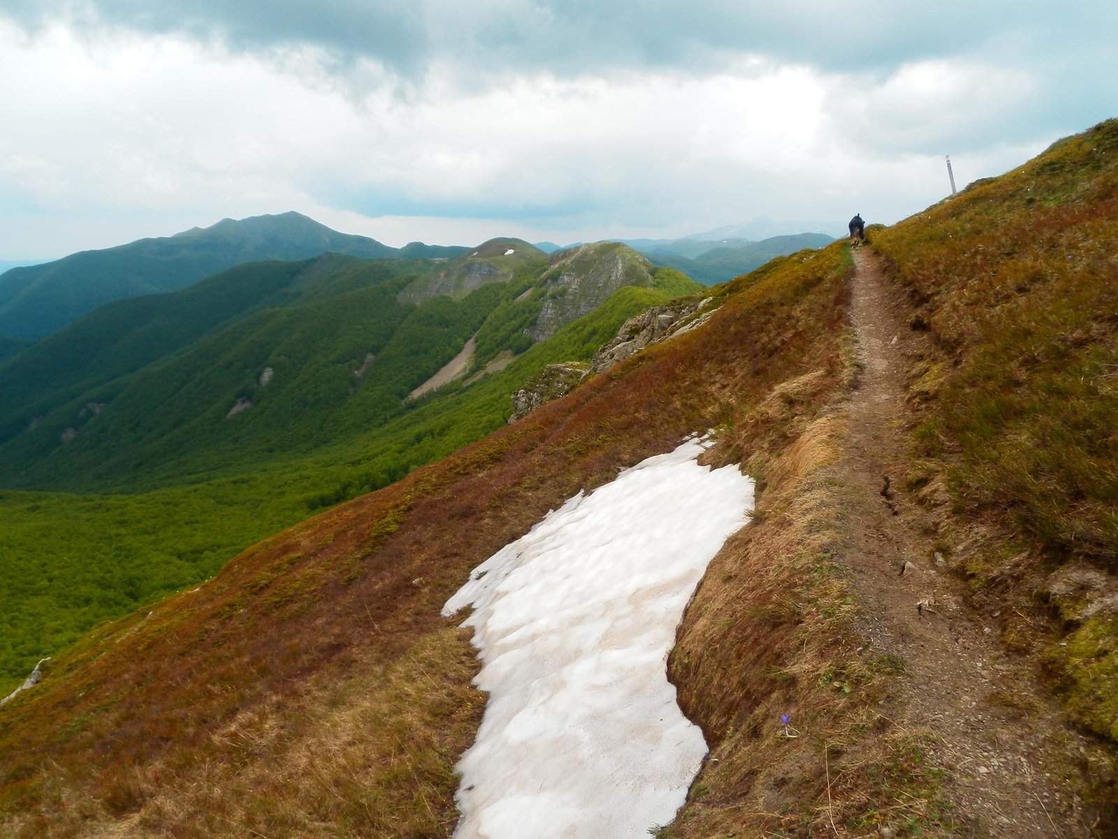 Trekking, lunghisssimo, partenza da Cerreto Laghi per il sentiero 649 che porta sul crinale reggiano, ad un certo punto non si sapeva più dove proseguire ed io e Thor abbiamo accorciato di un bel pò per fratte per arrivare sul crinale al sentiero 00 :) , attraversamento del crinale fino al P.sso del Cavorsella e discesa ad anello, il problema(sarà che la mia cartina ha 4 anni) è che il riconciungimento con il sentiero 649C non è per niente segnato al ritorno(almeno io non l'ho visto) ed abbiamo fatto il giro dell'oca risbucando da sotto il L.go Pranda, behh che dire, Thor si è visto anche i laghetti.C'è una deviazione che dal sentiero 647, senza arrivare a Cerreto Alpi, arriva al Lago Pranda e poi si sale fino a Cerreto Laghi e Lago Cerretano. In tutto abbiamo impiegato 7 ore con pioggia sul crinale dal passo di Cavorsella a scendere, nel complesso è un bel trekking completo anche di pioggia nei primi di Giugno ma ci vuole un pò di allenamento per farlo, causa sali scendi, ma è un bel trekking.Thor fa il Super-Dog ma è stanco anche lui questa sera ;) Alla prox avventura. L'altezza raggiunta non saprei dirla ma siamo circa intorno ai 1700-1730, quindi 700 metri di dislivello.