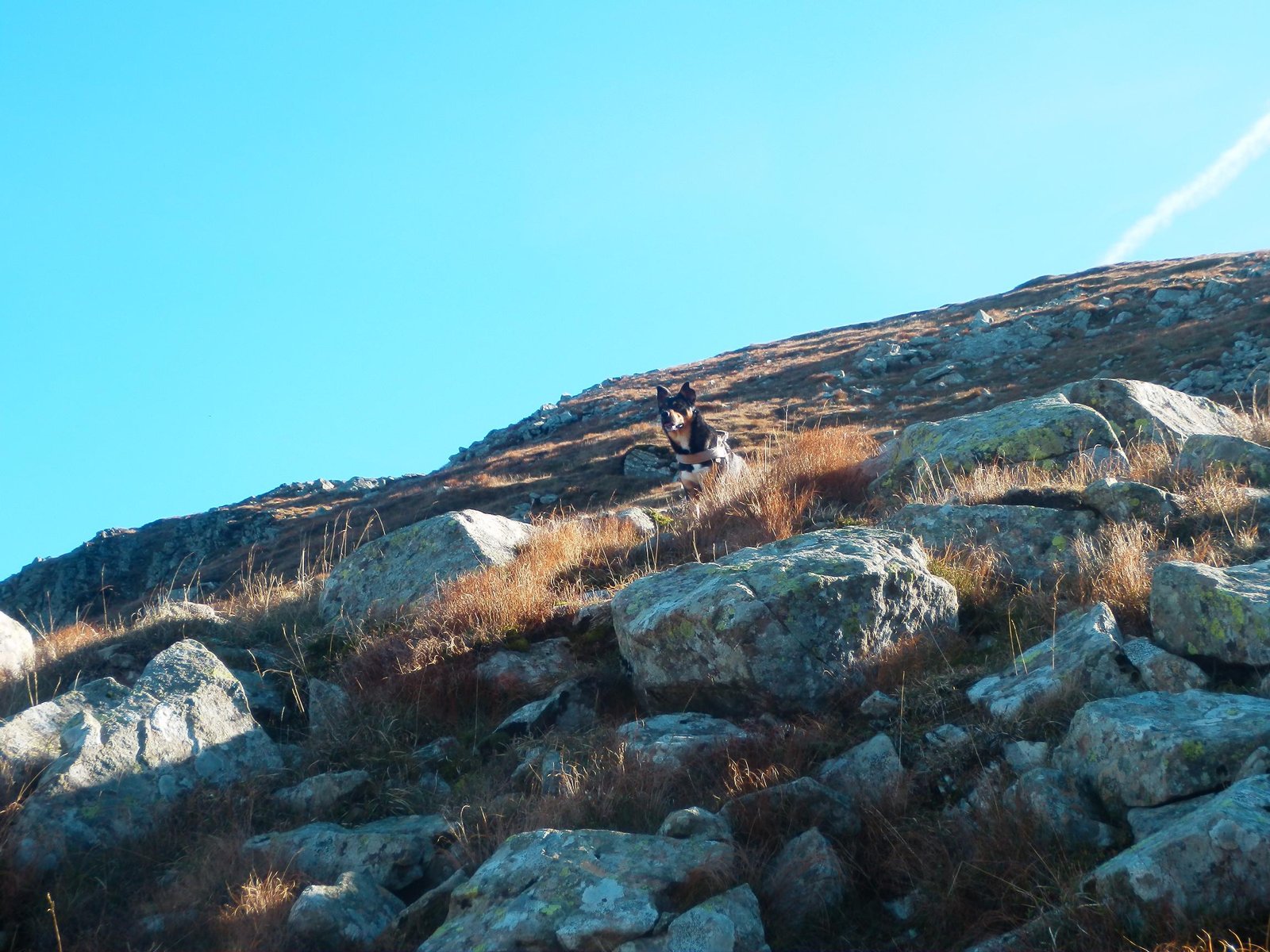 Condivido questo album, perchè rappresenta uno dei primissimi trekking di Thor, un meticcio di pastore tedesco, adottato a settembre 2013, dopo un mese di canile perchè lo avevano abbandonato d'estate. Questo fu per lui il terzo o massimo quarto trekking, volevo sia dare la speranza ad un cane del canile sia portarlo con me in montagna, adesso è talmente abituato che vuole sempre andare in montagna, ha girato tantissimi posti, dal Trentino, l'Appennino fino in Valtellina. Penso che il posto ideale di un cane sia proprio la montagna, lo avverto con Thor, io non ho mai avuto problemi con Thor, ormai sono 3 anni che facciamo escursioni insieme, Thor ha visto mucche, stambecchi, capre, pecore, marmotte, non è mai successo niente e non ha mai aggredito nessun animale, dico questo perchè sentire che in alcuni parchi i cani non possono entrare perchè disturbano la fauna selvatica mi fa veramente innervosire, in primis se è selvatica è giusto che rimanga nello stato selvatico e sull'attenti, quindi la presenza di un cane fa solo bene all'ambiente, inoltre un cane abituato a stare in casa con il suo padrone, e lo dico per esperienza, non attaccherebbe mai nè un branco di stambecchi e neanche le marmotte(se un veterinario dice il contrario fatemelo conoscere), il cane è curioso tutto qui, Thor ha paura delle mucche, tenta di avvicinarsi ma appena una mucca si muove lo vedi filare via come un razzo. Il Parco del Gran Paradiso scrive, in un suo comunicato per spiegare il motivo per il quale i cani non possono entrare,che attribuisce la morte di alcune marmotte ai cani, primo un cane non riuscirebbe mai a prendere una marmotta, è impossibile, essendo un predatore dovrebbe fargli la punta per ore ed aspettare il momento ideale per catturarla(cosa che non può con il padrone alle canlcagna che lo chiama per andare avanti nel trekking), se gli corre incontro e cerca di prenderla non ce la farà mai, chi dice il contrario sinceramente non conosce la natura e gli animali , come si muovono e come cacciano.Inoltre un cane di appartamento non ha l'esigenza della caccia, "ehh ma il cane è predatore" ma non c'entra nulla, anche l'uomo è predatore, il cane per alimentare il suo essere "predatore", primo si muove in branco MAI DA SOLO, un cane da solo muore, non riuscirebbe a sopravvivere, se un veterinario dice il contrario, vi prego di contattarmi. E allora i cani da caccia? Ed ecco l'ignoranza tutta italiana!!Ho in famiglia persone che andavano a caccia ed hanno avuto cani da caccia, il cane da caccia NON UCCIDE LA PREDA, ma informa dell'odore, della posizione o recupera una preda, non esiste che un cane da caccia uccida altri animali. Perchè non se ne può più di sentire gente che si inventa le peggiori fesserie per non permettere ad un cane di correre su un prato.E allora perchè corre dietro alle marmotte? PERCHE' E' CURIOSO.Il mio cane non ha mai aggredito nè marmotte, nè tanto meno stambecchi(ha paura, lo stambecco è tre volte lui e sono tutti in branco lui è da solo), nè qualsiasi altro animale, e se corre dietro ad una marmotta non è certamente perchè la vuole mangiare ma perchè è la sua indole, vede animali nuovi, li sente fischiare, deve annusare, deve sentire l'odore, deve capire con chi ha a che fare.Un'altra cosa importante è se il cane deve essere libero o al guinzaglio, in montagna un cane non può essere al guinzaglio, NON PUO' ammeno che non sia vicino ad un rifugio con tanta gente ma su un sentiero a 2500 metri non si può tenere un cane al guinzaglio, o scalando una montagna con il cane legato che si rischia di cadere in due sia il cane che il padrone, due cani maschi al guinzaglio, adulti di taglia simile, se si incontrano sicuramente litigano, al 99%, e tanto meno se un cane è libero e l'altro al guinzaglio, perchè tenuto al guinzaglio il cane si sente sottomesso e se viene avvicinato da un altro cane libero sicuramente si scontrano mentre se sono tutti e due liberi RIESCONO A METTERSI D'ACCORDO MOLTO MEGLIO DI NOI ESSERI UMANI. Impedire ai cani di entrare in montagna credo che sia veramente la più becera meschinità dell'essere umano, impedire ad un cane di essere nel suo posto ideale è veramente la peggiore delle torture, però ovviamente gli impianti di risalita per sciare tra gli stambecchi quelli no, quelli non disturbano la fauna selvatica, quanta ipocrisia per fare due euro in più.