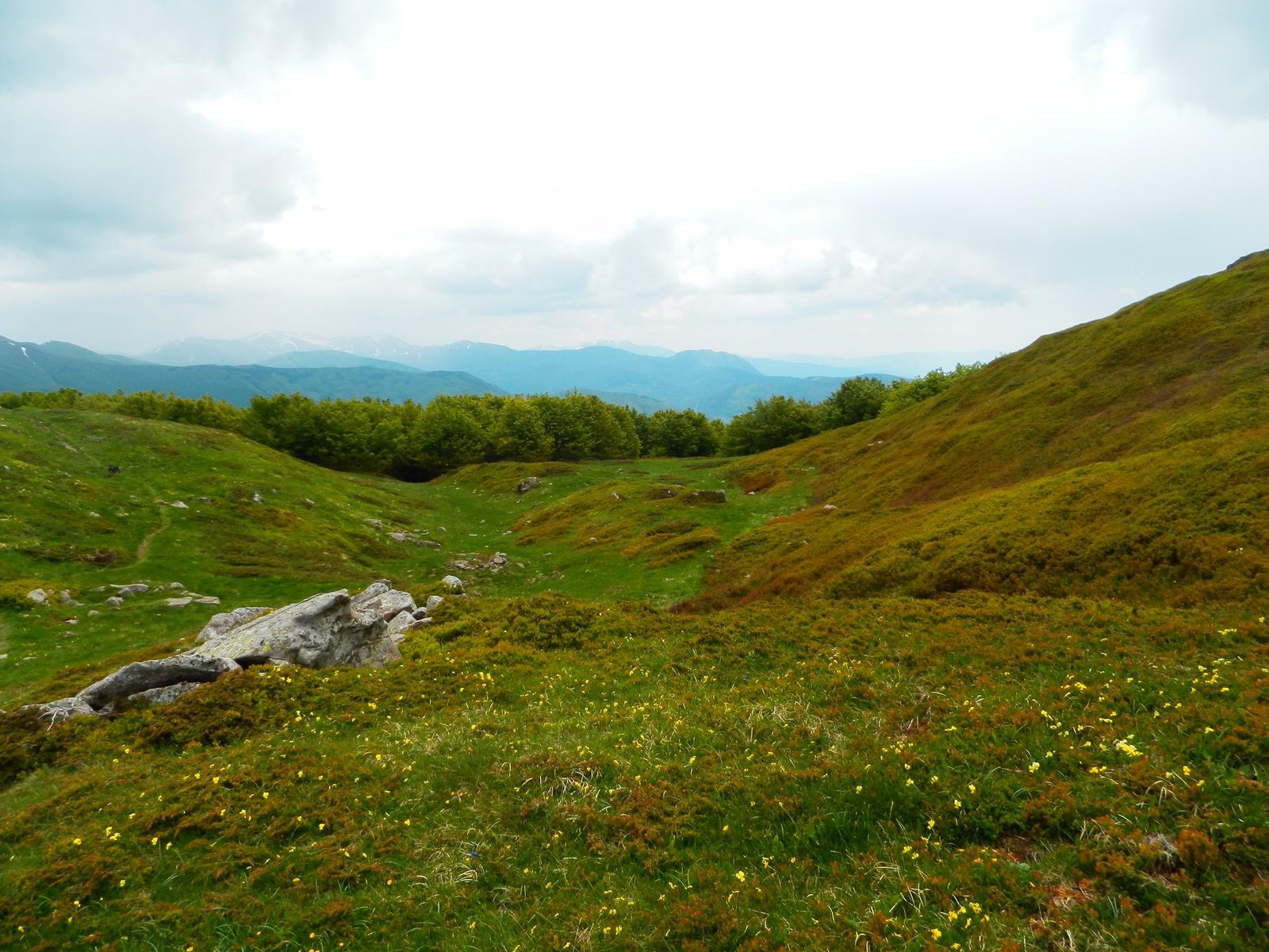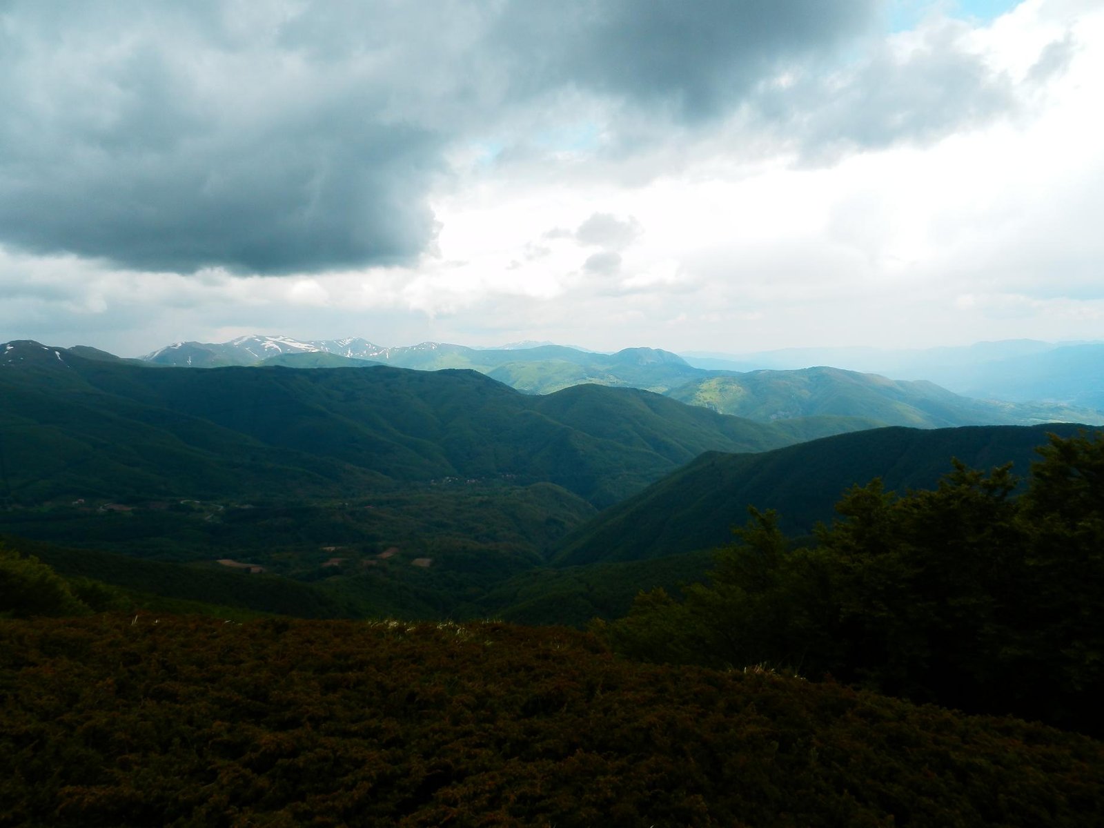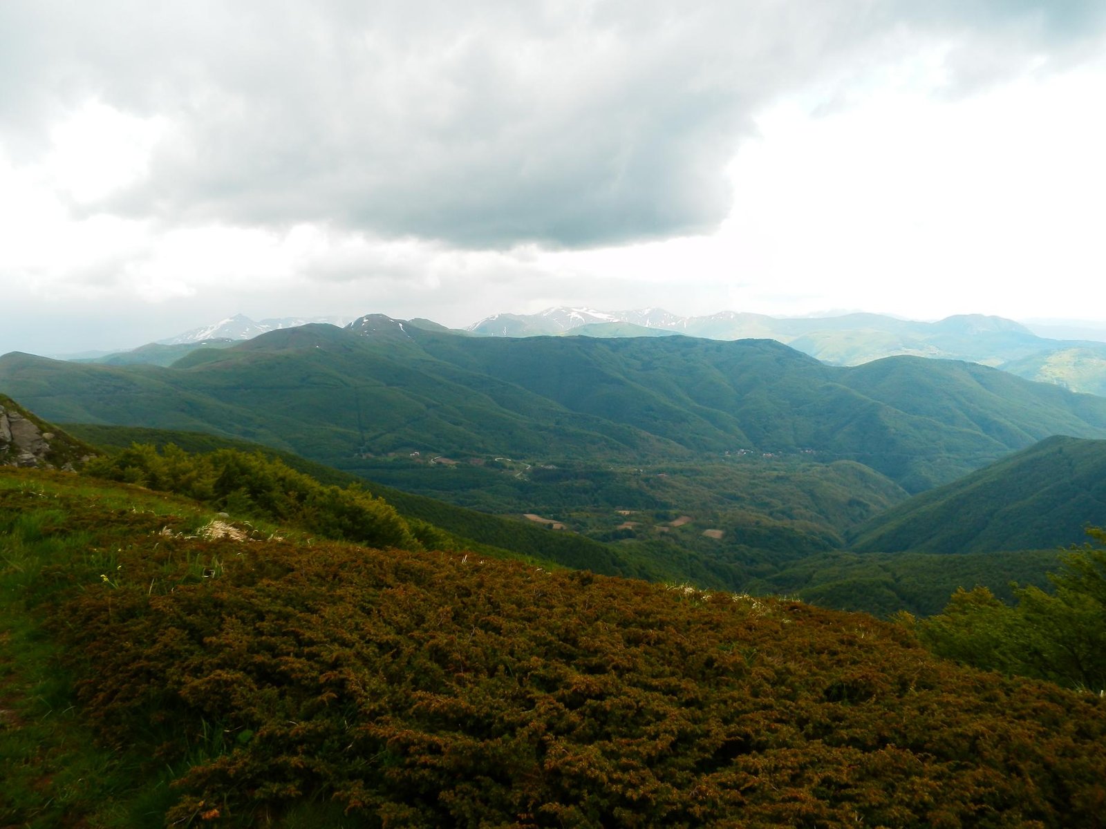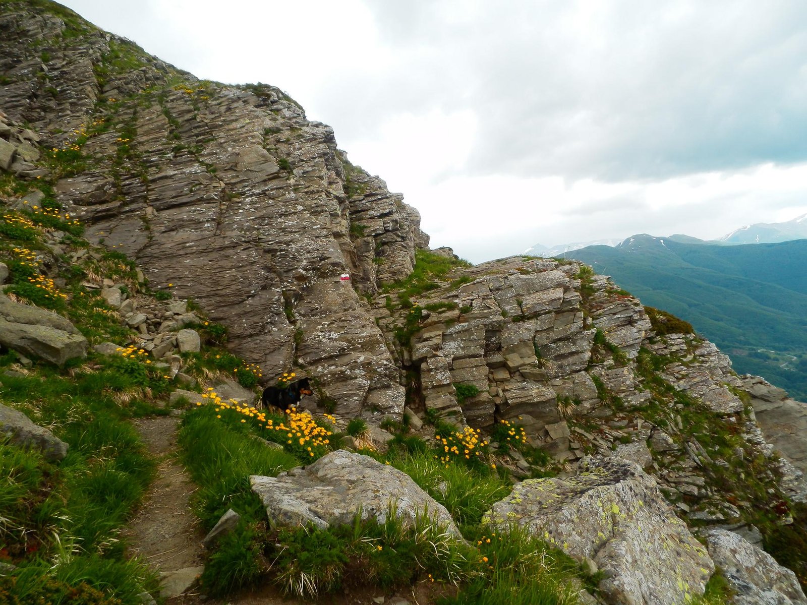 Trekking, lunghisssimo, partenza da Cerreto Laghi per il sentiero 649 che porta sul crinale reggiano, ad un certo punto non si sapeva più dove proseguire ed io e Thor abbiamo accorciato di un bel pò per fratte per arrivare sul crinale al sentiero 00 :) , attraversamento del crinale fino al P.sso del Cavorsella e discesa ad anello, il problema(sarà che la mia cartina ha 4 anni) è che il riconciungimento con il sentiero 649C non è per niente segnato al ritorno(almeno io non l'ho visto) ed abbiamo fatto il giro dell'oca risbucando da sotto il L.go Pranda, behh che dire, Thor si è visto anche i laghetti.C'è una deviazione che dal sentiero 647, senza arrivare a Cerreto Alpi, arriva al Lago Pranda e poi si sale fino a Cerreto Laghi e Lago Cerretano. In tutto abbiamo impiegato 7 ore con pioggia sul crinale dal passo di Cavorsella a scendere, nel complesso è un bel trekking completo anche di pioggia nei primi di Giugno ma ci vuole un pò di allenamento per farlo, causa sali scendi, ma è un bel trekking.Thor fa il Super-Dog ma è stanco anche lui questa sera ;) Alla prox avventura. L'altezza raggiunta non saprei dirla ma siamo circa intorno ai 1700-1730, quindi 700 metri di dislivello.