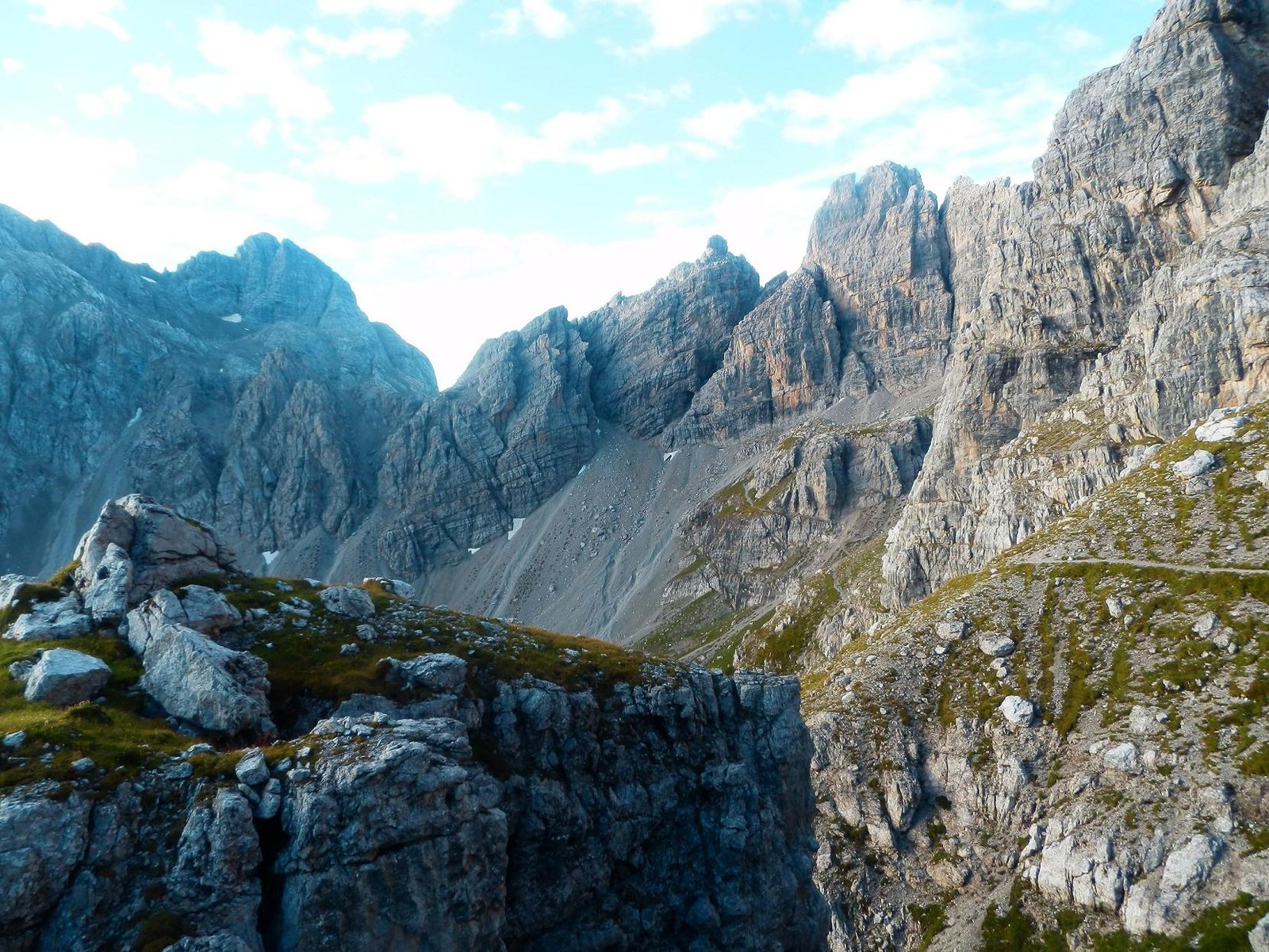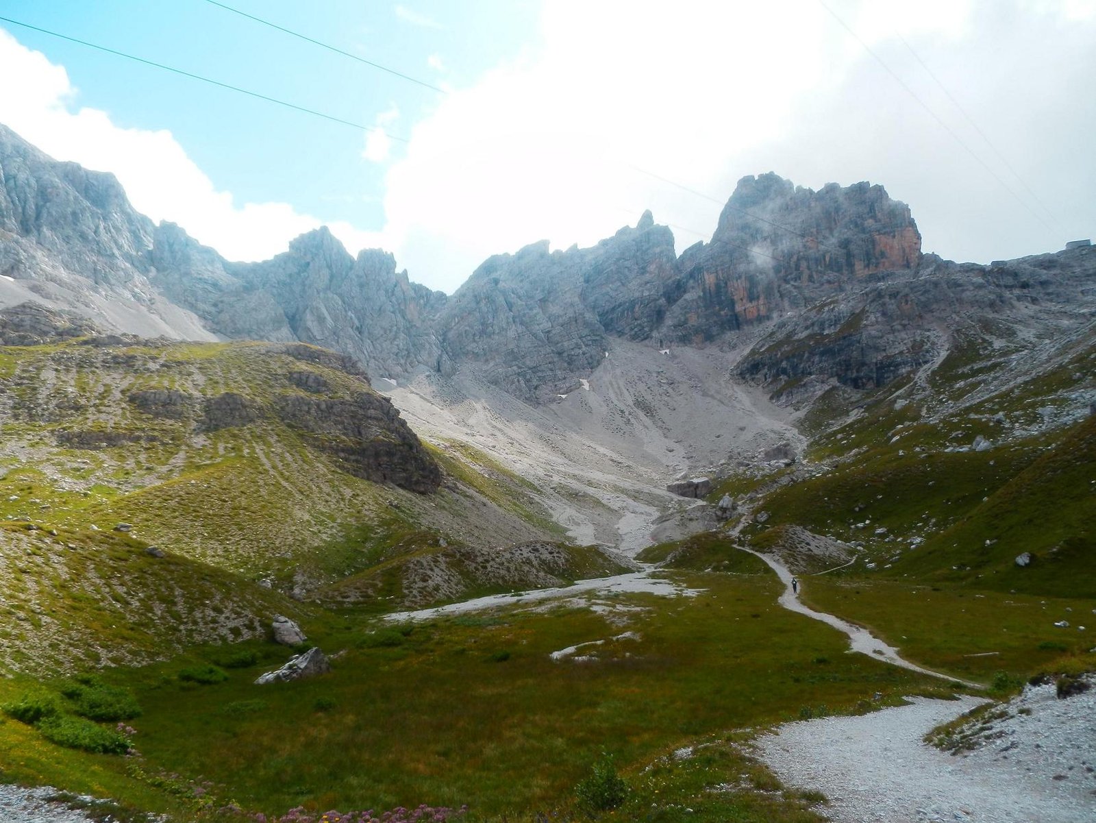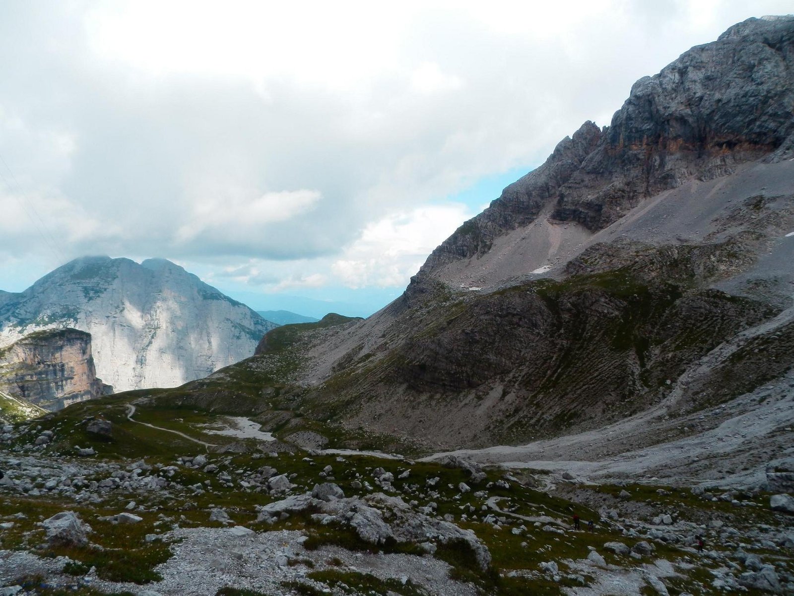 Il giorno dopo siamo partiti da rifugio e poco sotto parte il sentiero degli orsi che porta alla nuova ferrata Spellini, fatta nel 2010, scale e cavi di acciaio in ferrata che percorrono tutta la parete fino ad arrivare a Punta Dei Armi(2750Mt), da lì parte l’altra ferrata delle Bocchette Centrali, cenge e scalette ma nulla di impegnativo, per questo abbiamo scelto di fare la Spellini in salita dato che sarebbe più difficoltosa farla in discesa sia per le scale che sono numerose e di circa 10-15 metri sia per gli attacchi della ferrata.Dopo le numerose cenge delle Bocchette centrali siamo ritornati al Rifugio e da lì siamo riscesi fino a Pradel dove abbiamo preso la cabinovia per Molveno.Dislivello in salita totale primo+secondo giorno circa 1500Mt ed altrettanti in discesa abbiamo toccato il punto più alto a circa 2850Mt.