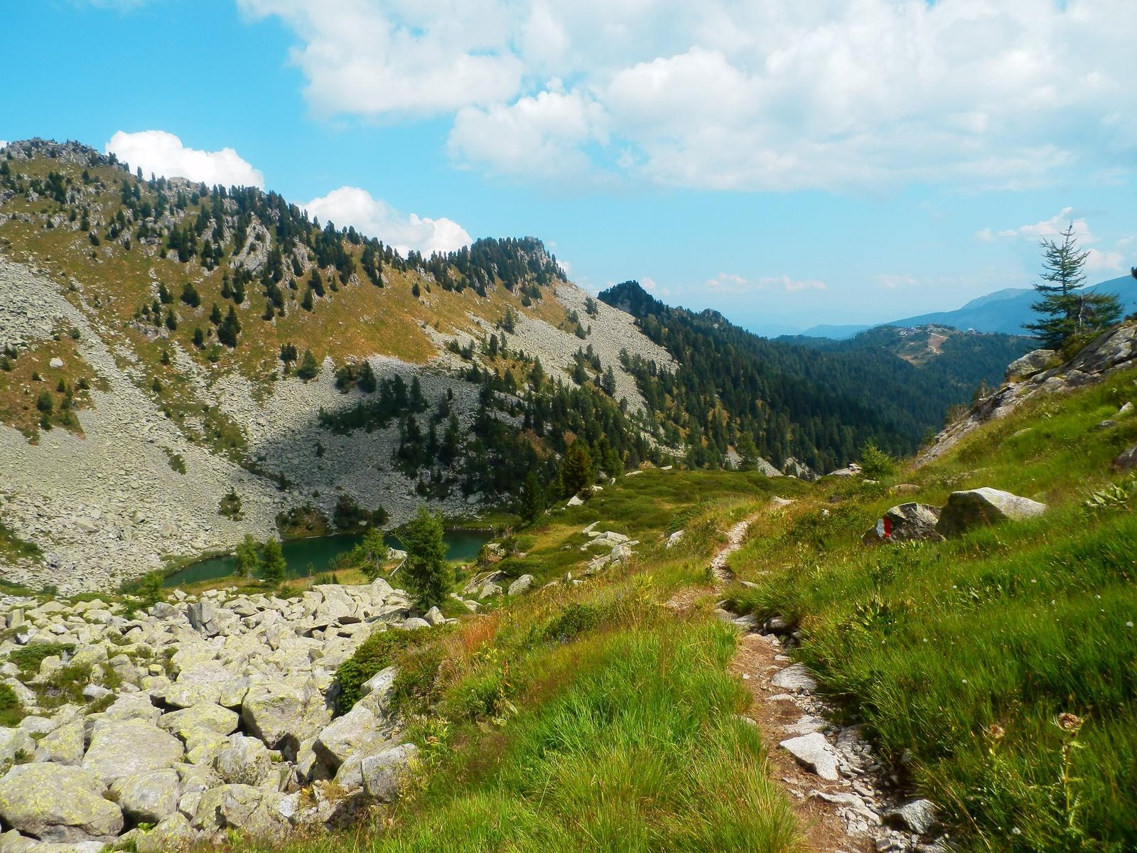 Sempre un giro dei laghetti dell’Adamello Brenta, partenza da Madonna di Campiglio, prima del paese si parcheggia a dx dove parte il sentiero per la Malga Vigo, passata la Malga si prosegue per il Rifugio delle Malghette dove si trova il primo lago, lago delle Malghette, si sale successivamente a dx e si prosegue per il lago Alto, si continua per i Tre Laghi e poi ad anello si scende per il Lago Scuro e rientro al rifugio delle Malghette e Malga Vigo e si scende al parcheggio dalla mulattiera.